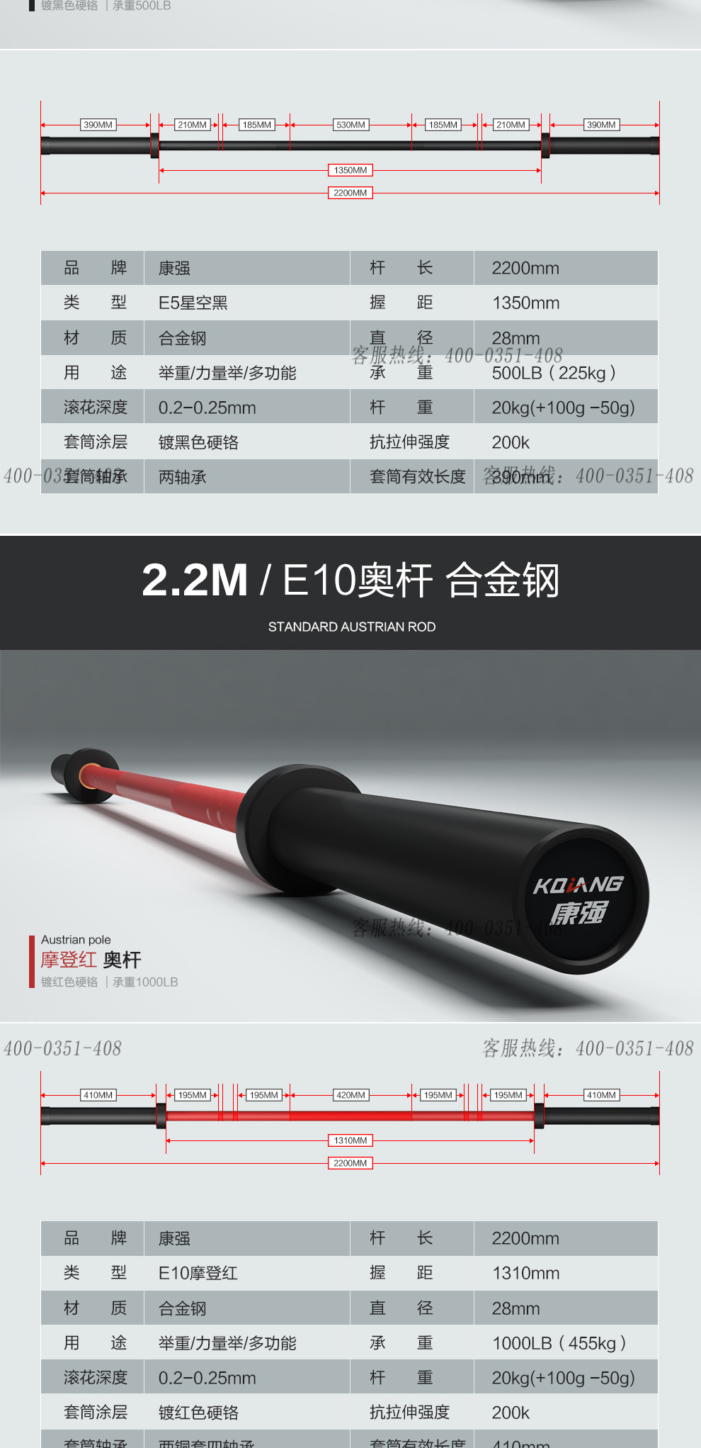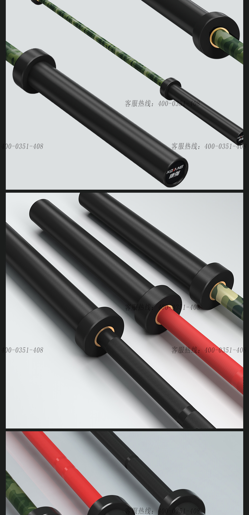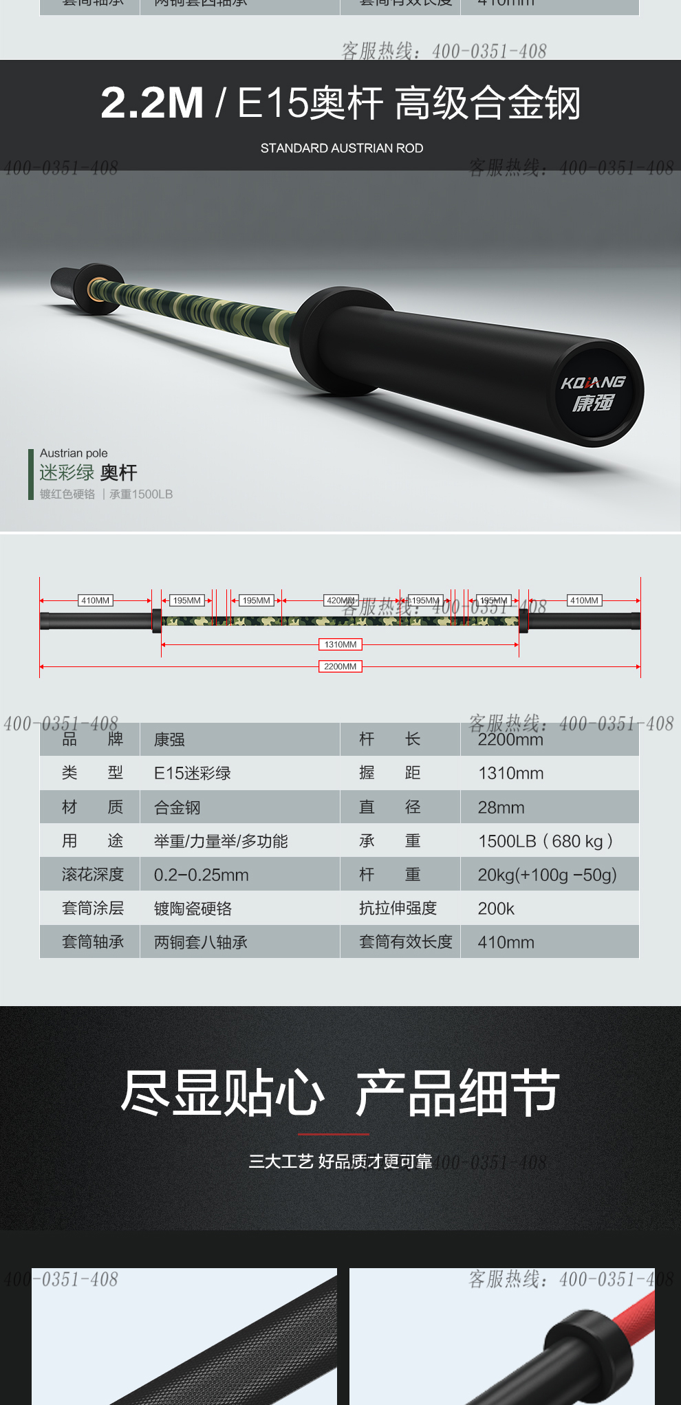 leyu.乐鱼杠铃杆硬铬陶瓷镀黑彩色男士女士举重训练杆八轴承2.2M奥杆 E15迷彩绿承重1500LB
