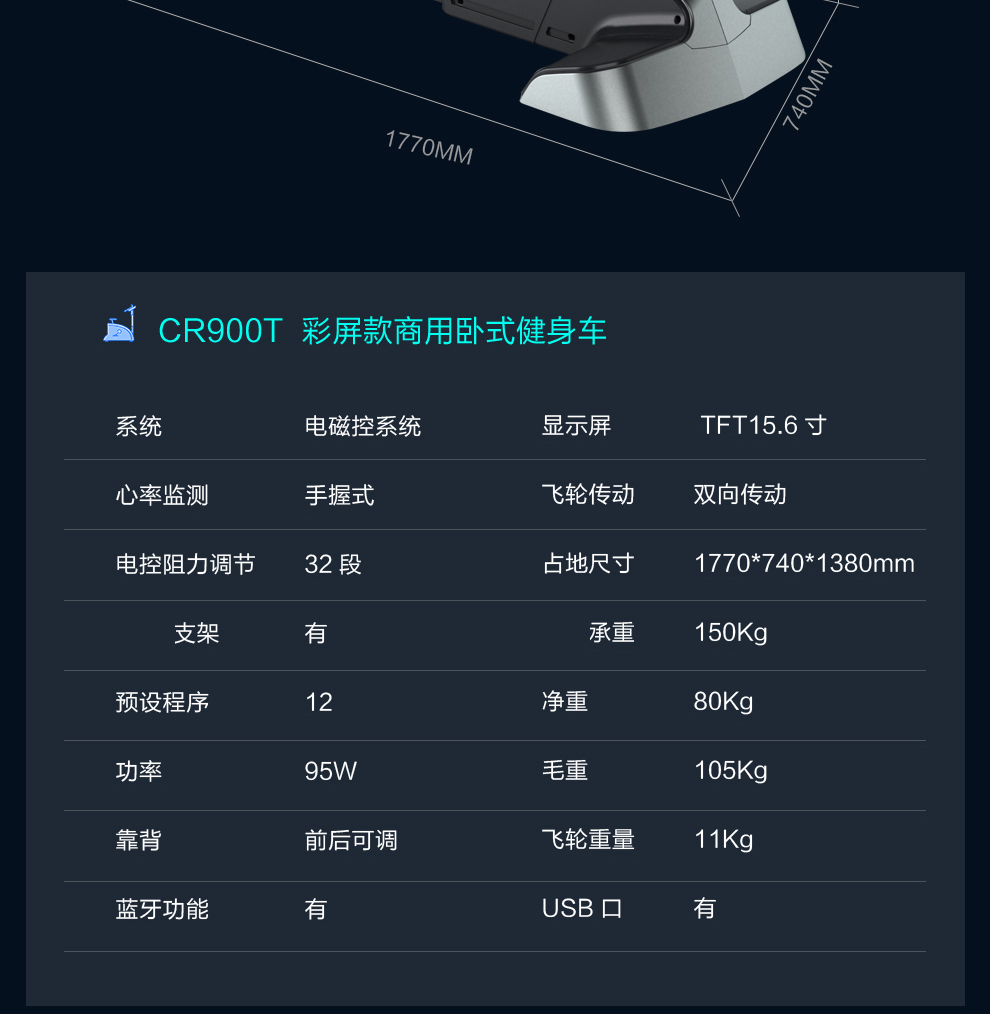 leyu.乐鱼商用卧式单车CR900T磁控车自发电健身车健身房专用
